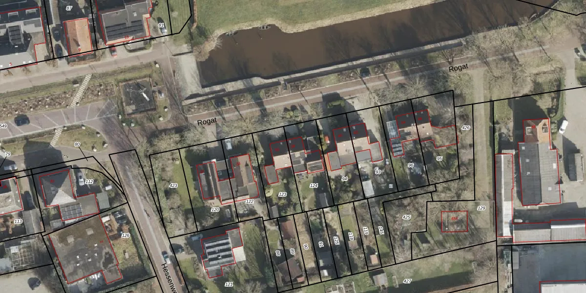 Het perceel waarop Rogat 38 staat heeft een oppervlakte van 336 m². Dit is een groot perceel. De perceeloppervlakte wordt geregistreerd door het Kadaster. Gedetailleerde informatie over de maten van dit perceel kunt u vinden in het rapport Kadastrale kaart met maatvoering van Rogat 38.