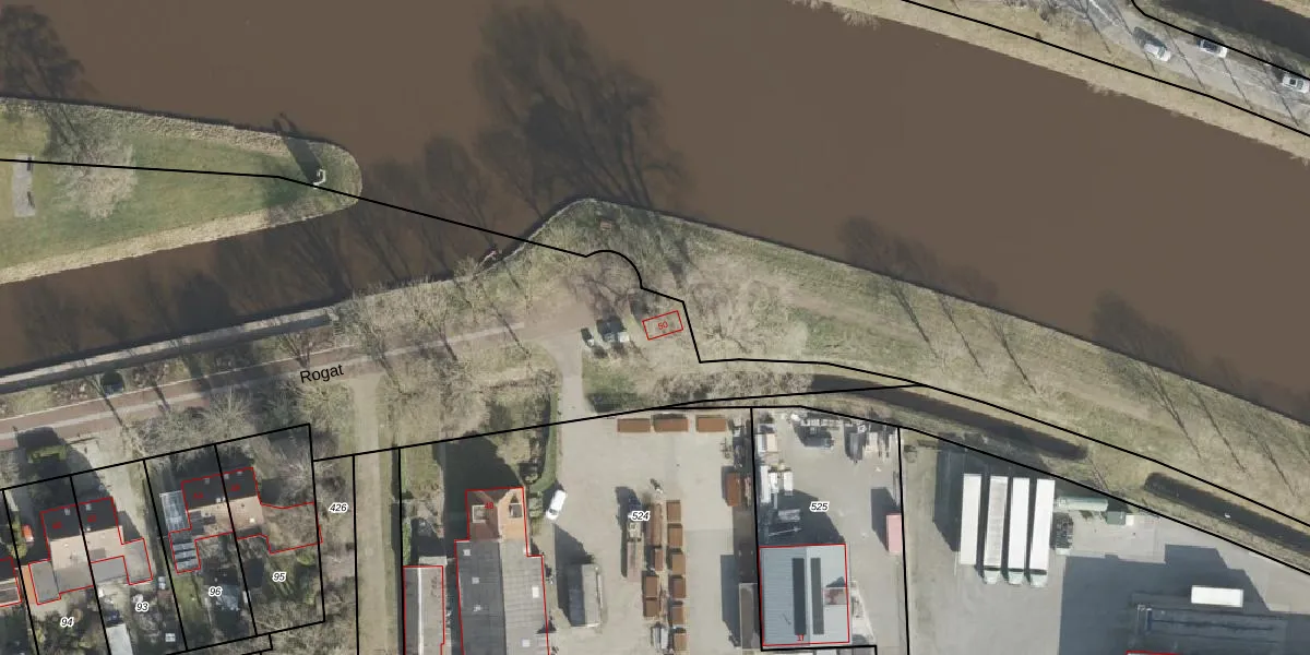 Het perceel waarop Rogat 50 staat heeft een oppervlakte van 1,1 ha. Dit is een zeer groot perceel. De perceeloppervlakte wordt geregistreerd door het Kadaster. Gedetailleerde informatie over de maten van dit perceel kunt u vinden in het rapport Kadastrale kaart met maatvoering van Rogat 50.