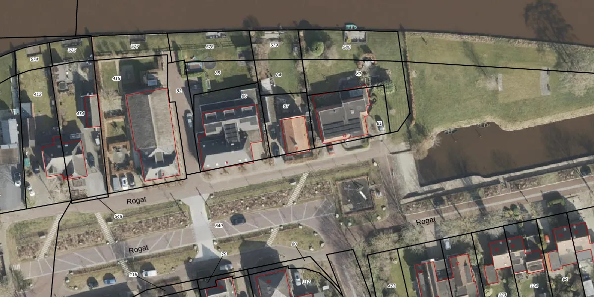Het perceel waarop Rogat 9 staat heeft een oppervlakte van 340 m². Dit is een groot perceel. De perceeloppervlakte wordt geregistreerd door het Kadaster. Gedetailleerde informatie over de maten van dit perceel kunt u vinden in het rapport Kadastrale kaart met maatvoering van Rogat 9.