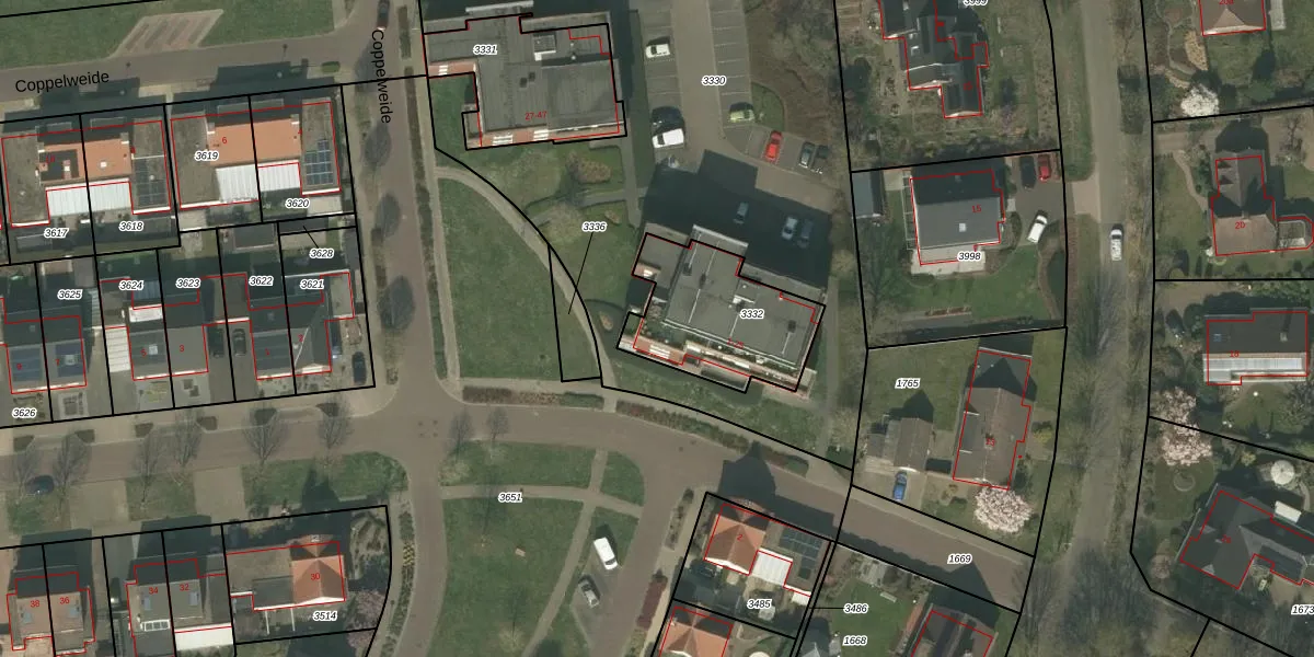 Coppelweide 13 is gelegen op kadastraal perceel RGL00G3332. Deze kadastrale aanduiding is uniek en wordt gebruikt door het Kadaster om eigendomsrechten en andere zakelijke rechten vast te leggen. Het perceel maakt onderdeel uit van de kadastrale gemeente Roggel.