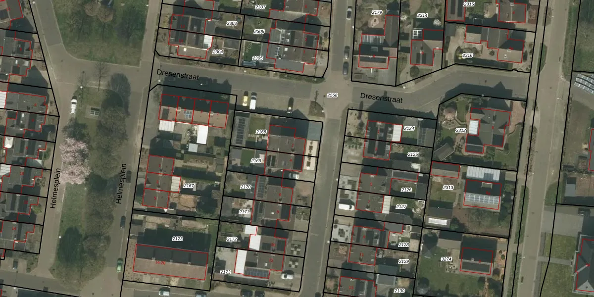 Gebruik de zoekbalk of klik op een perceel voor informatie over de adressen binnen dit perceel.