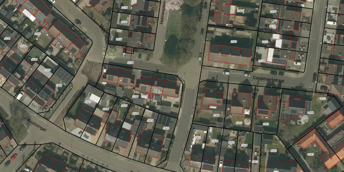 Het perceel waarop Coupmansstraat 33 staat heeft een oppervlakte van 995 m². Dit is een groot perceel. De perceeloppervlakte wordt geregistreerd door het Kadaster. Gedetailleerde informatie over de maten van dit perceel kunt u vinden in het rapport Kadastrale kaart met maatvoering van Coupmansstraat 33.
