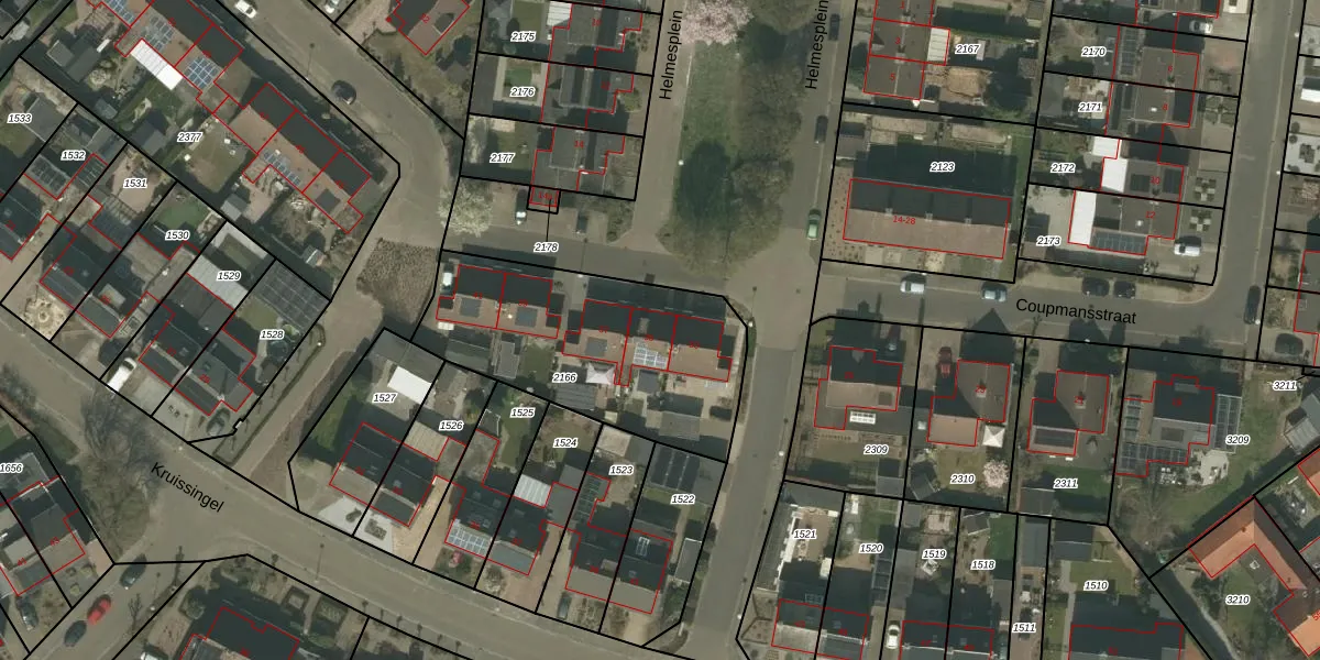 Het perceel waarop Coupmansstraat 35 staat heeft een oppervlakte van 995 m². Dit is een groot perceel. De perceeloppervlakte wordt geregistreerd door het Kadaster. Gedetailleerde informatie over de maten van dit perceel kunt u vinden in het rapport Kadastrale kaart met maatvoering van Coupmansstraat 35.