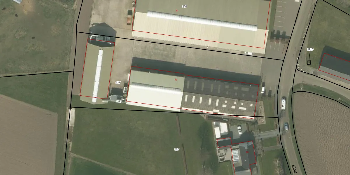 Eind 1-b is gelegen op kadastraal perceel RGL00G937. Deze kadastrale aanduiding is uniek en wordt gebruikt door het Kadaster om eigendomsrechten en andere zakelijke rechten vast te leggen. Het perceel maakt onderdeel uit van de kadastrale gemeente Roggel.