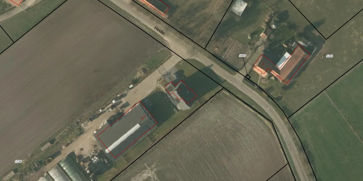 Het perceel waarop Heide 1-c staat heeft een oppervlakte van 2,2 ha. Dit is een zeer groot perceel. De perceeloppervlakte wordt geregistreerd door het Kadaster. Gedetailleerde informatie over de maten van dit perceel kunt u vinden in het rapport Kadastrale kaart met maatvoering van Heide 1-c.