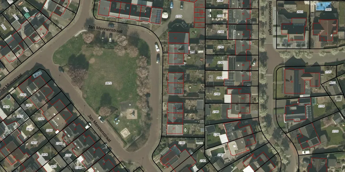 Het perceel waarop Jan Mennenstraat 21 staat heeft een oppervlakte van 3119 m². Dit is een zeer groot perceel. De perceeloppervlakte wordt geregistreerd door het Kadaster. Gedetailleerde informatie over de maten van dit perceel kunt u vinden in het rapport Kadastrale kaart met maatvoering van Jan Mennenstraat 21.
