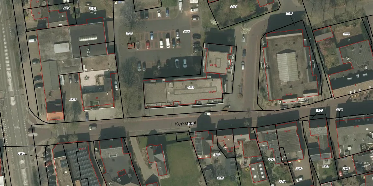 Het perceel waarop Kerkstraat 18-a staat heeft een oppervlakte van 1015 m². Dit is een zeer groot perceel. De perceeloppervlakte wordt geregistreerd door het Kadaster. Gedetailleerde informatie over de maten van dit perceel kunt u vinden in het rapport Kadastrale kaart met maatvoering van Kerkstraat 18-a.