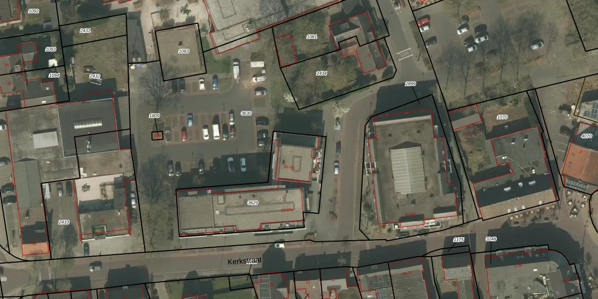 Het perceel waarop Kerkstraat 20-b staat heeft een oppervlakte van 1015 m². Dit is een zeer groot perceel. De perceeloppervlakte wordt geregistreerd door het Kadaster. Gedetailleerde informatie over de maten van dit perceel kunt u vinden in het rapport Kadastrale kaart met maatvoering van Kerkstraat 20-b.