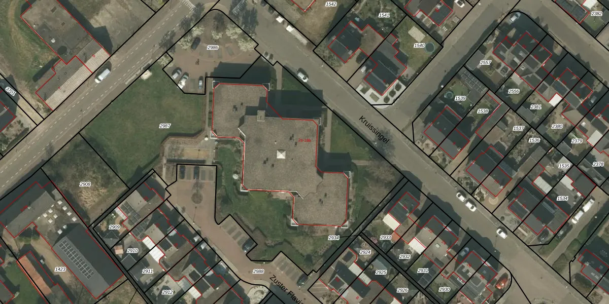 Kruissingel 18 is gelegen op kadastraal perceel RGL00G2987. Deze kadastrale aanduiding is uniek en wordt gebruikt door het Kadaster om eigendomsrechten en andere zakelijke rechten vast te leggen. Het perceel maakt onderdeel uit van de kadastrale gemeente Roggel.