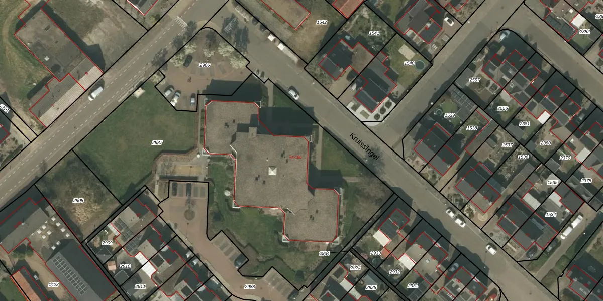 Het perceel waarop Kruissingel 4-b staat heeft een oppervlakte van 3921 m². Dit is een zeer groot perceel. De perceeloppervlakte wordt geregistreerd door het Kadaster. Gedetailleerde informatie over de maten van dit perceel kunt u vinden in het rapport Kadastrale kaart met maatvoering van Kruissingel 4-b.