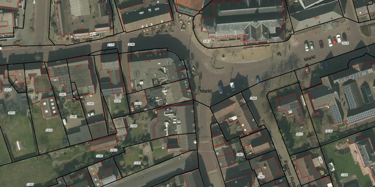 Het perceel waarop Markt 13 staat heeft een oppervlakte van 390 m². Dit is een groot perceel. De perceeloppervlakte wordt geregistreerd door het Kadaster. Gedetailleerde informatie over de maten van dit perceel kunt u vinden in het rapport Kadastrale kaart met maatvoering van Markt 13.
