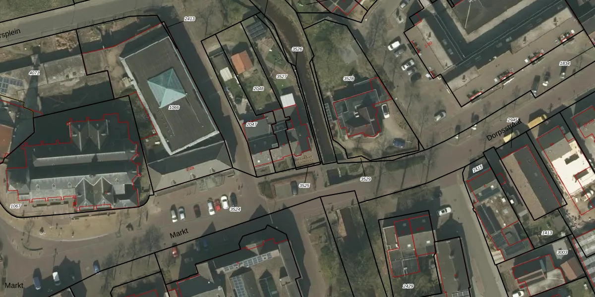 Het perceel waarop Markt 5 staat heeft een oppervlakte van 437 m². Dit is een groot perceel. De perceeloppervlakte wordt geregistreerd door het Kadaster. Gedetailleerde informatie over de maten van dit perceel kunt u vinden in het rapport Kadastrale kaart met maatvoering van Markt 5.