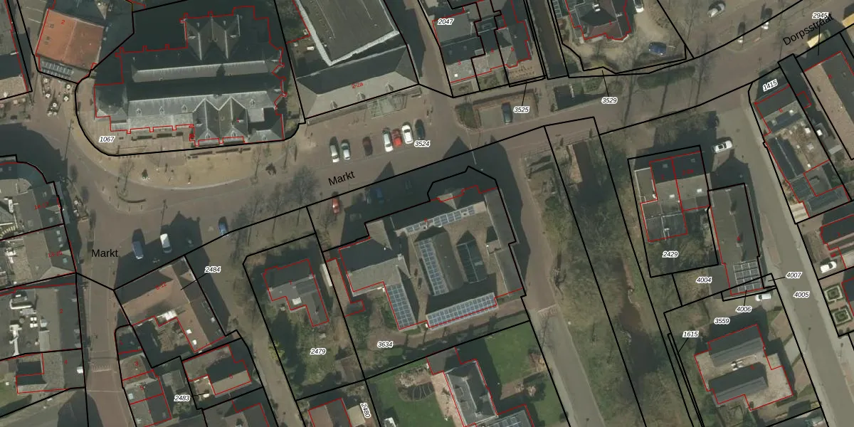 Het perceel waarop Markt 6 staat heeft een oppervlakte van 1475 m². Dit is een zeer groot perceel. De perceeloppervlakte wordt geregistreerd door het Kadaster. Gedetailleerde informatie over de maten van dit perceel kunt u vinden in het rapport Kadastrale kaart met maatvoering van Markt 6.