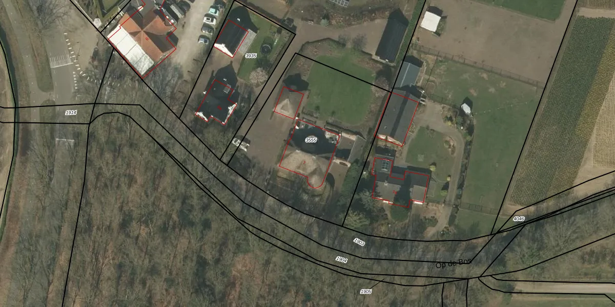 Het perceel waarop Op de Bos 7 staat heeft een oppervlakte van 1755 m². Dit is een zeer groot perceel. De perceeloppervlakte wordt geregistreerd door het Kadaster. Gedetailleerde informatie over de maten van dit perceel kunt u vinden in het rapport Kadastrale kaart met maatvoering van Op de Bos 7.