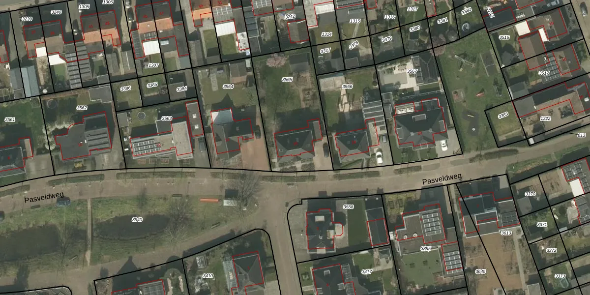 Pasveldweg 16 is gelegen op kadastraal perceel RGL00G3565. Deze kadastrale aanduiding is uniek en wordt gebruikt door het Kadaster om eigendomsrechten en andere zakelijke rechten vast te leggen. Het perceel maakt onderdeel uit van de kadastrale gemeente Roggel.