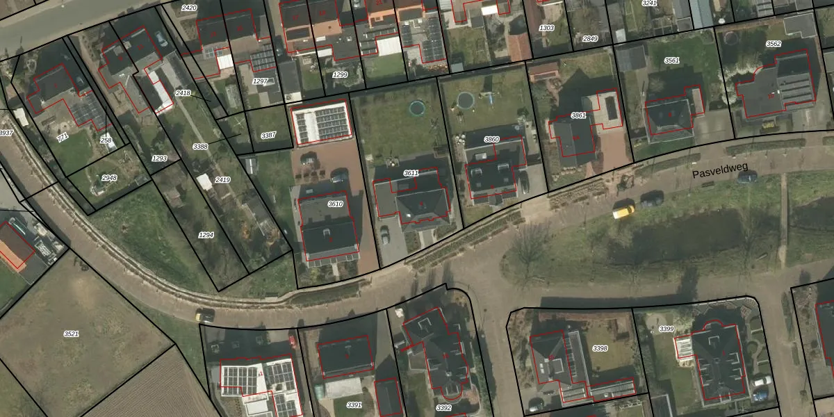 Pasveldweg 4 is gelegen op kadastraal perceel RGL00G3611. Deze kadastrale aanduiding is uniek en wordt gebruikt door het Kadaster om eigendomsrechten en andere zakelijke rechten vast te leggen. Het perceel maakt onderdeel uit van de kadastrale gemeente Roggel.
