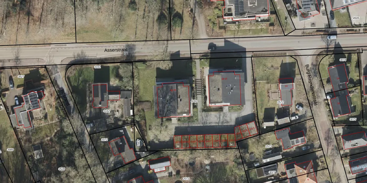 Het perceel waarop Asserstraat 1-g staat heeft een oppervlakte van 3171 m². Dit is een zeer groot perceel. De perceeloppervlakte wordt geregistreerd door het Kadaster. Gedetailleerde informatie over de maten van dit perceel kunt u vinden in het rapport Kadastrale kaart met maatvoering van Asserstraat 1-g.