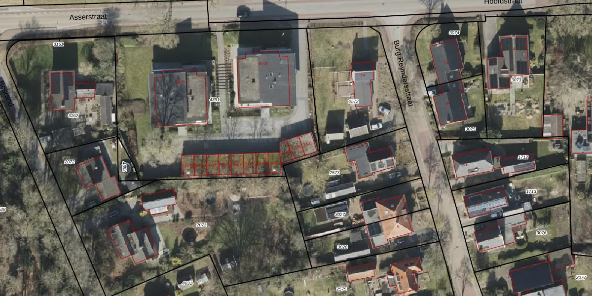 Het perceel waarop Asserstraat 1-G-2 staat heeft een oppervlakte van 3171 m². Dit is een zeer groot perceel. De perceeloppervlakte wordt geregistreerd door het Kadaster. Gedetailleerde informatie over de maten van dit perceel kunt u vinden in het rapport Kadastrale kaart met maatvoering van Asserstraat 1-G-2.