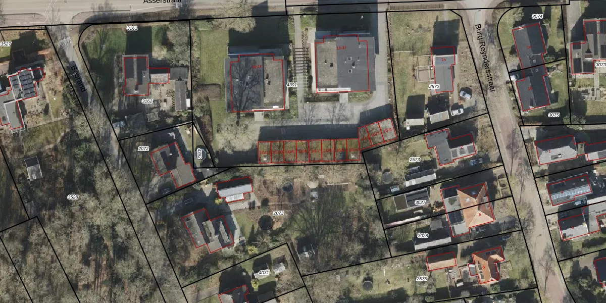 Het perceel waarop Asserstraat 1-G-8 staat heeft een oppervlakte van 3171 m². Dit is een zeer groot perceel. De perceeloppervlakte wordt geregistreerd door het Kadaster. Gedetailleerde informatie over de maten van dit perceel kunt u vinden in het rapport Kadastrale kaart met maatvoering van Asserstraat 1-G-8.