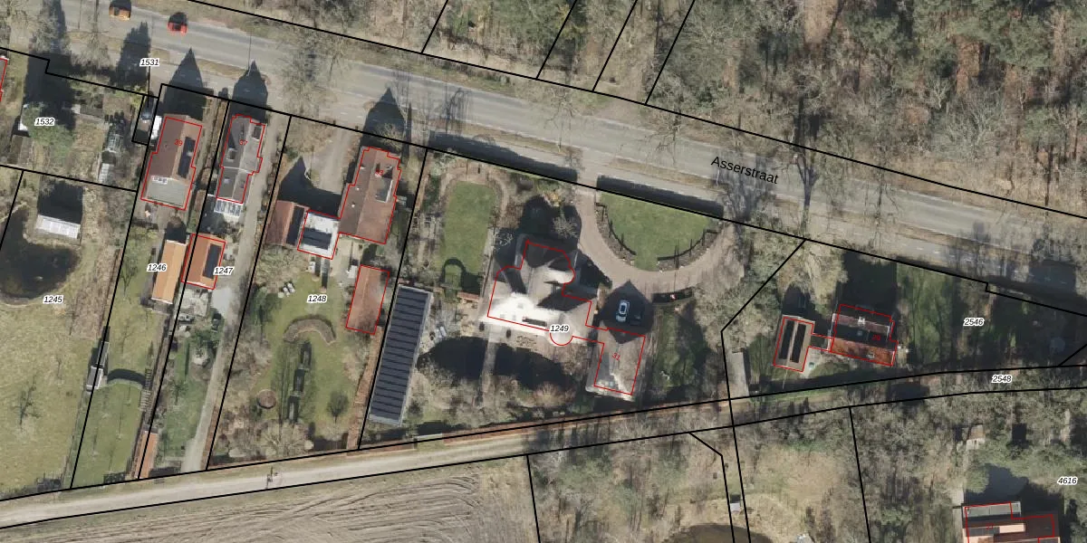 Asserstraat 31 is gelegen op kadastraal perceel RDE00V1249. Deze kadastrale aanduiding is uniek en wordt gebruikt door het Kadaster om eigendomsrechten en andere zakelijke rechten vast te leggen. Het perceel maakt onderdeel uit van de kadastrale gemeente Rolde.