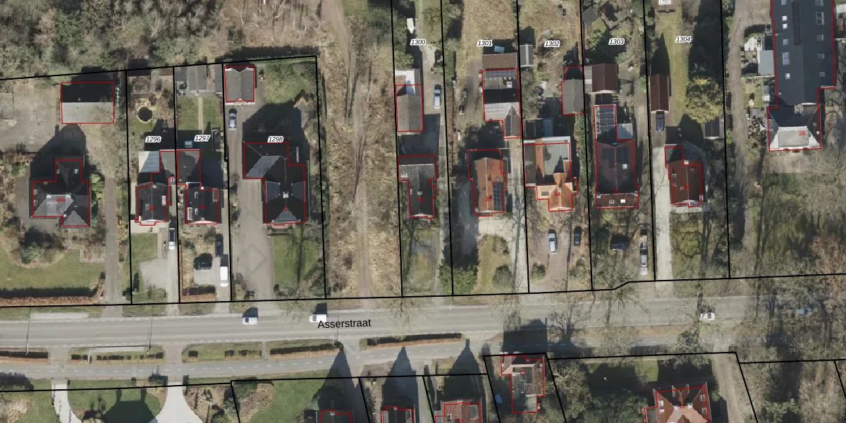 Asserstraat 38 is gelegen op kadastraal perceel RDE00V1300. Deze kadastrale aanduiding is uniek en wordt gebruikt door het Kadaster om eigendomsrechten en andere zakelijke rechten vast te leggen. Het perceel maakt onderdeel uit van de kadastrale gemeente Rolde.