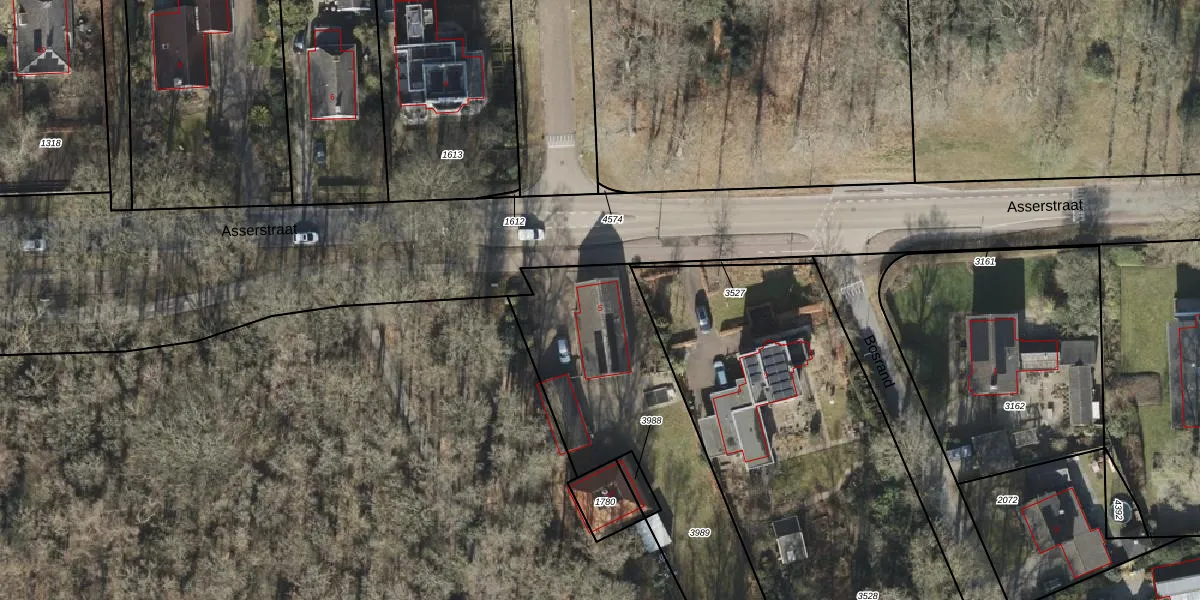 Het perceel waarop Asserstraat 5 staat heeft een oppervlakte van 1173 m². Dit is een zeer groot perceel. De perceeloppervlakte wordt geregistreerd door het Kadaster. Gedetailleerde informatie over de maten van dit perceel kunt u vinden in het rapport Kadastrale kaart met maatvoering van Asserstraat 5.