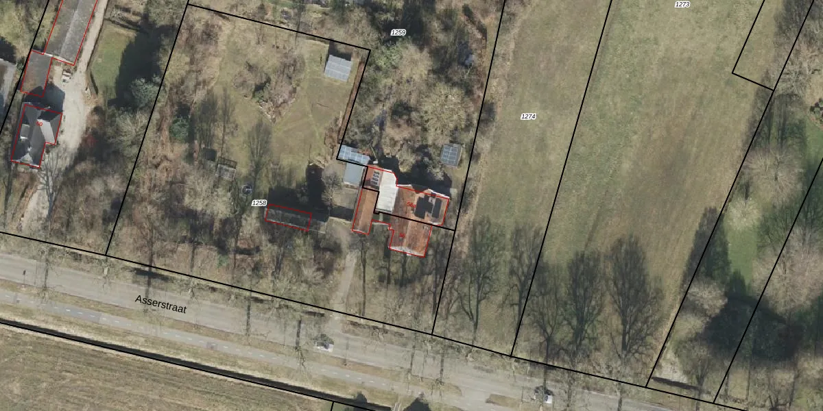 Asserstraat 56-a is gelegen op kadastraal perceel RDE00V1259. Deze kadastrale aanduiding is uniek en wordt gebruikt door het Kadaster om eigendomsrechten en andere zakelijke rechten vast te leggen. Het perceel maakt onderdeel uit van de kadastrale gemeente Rolde.