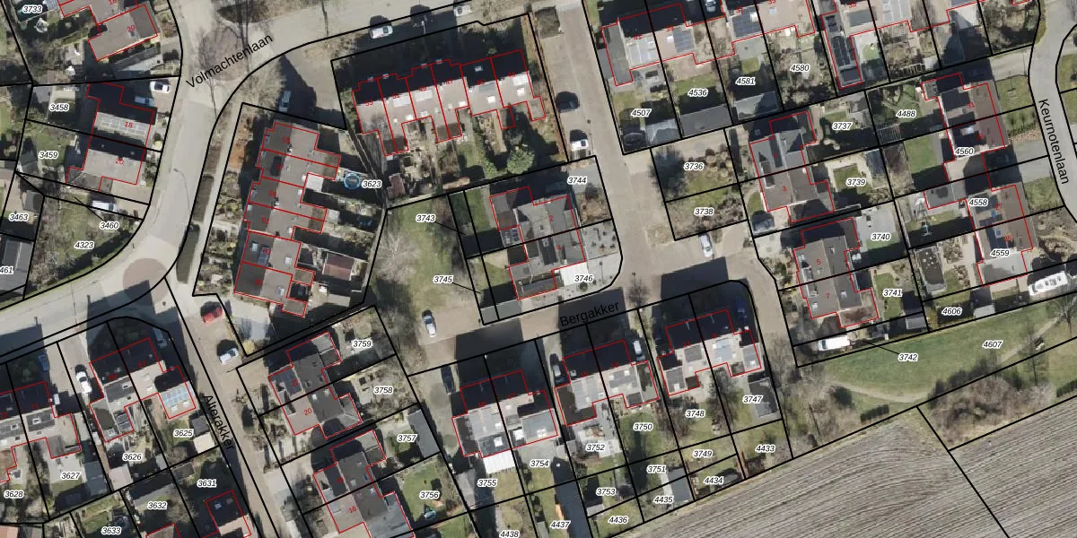 Bergakker 4 is gelegen op kadastraal perceel RDE00R3746. Deze kadastrale aanduiding is uniek en wordt gebruikt door het Kadaster om eigendomsrechten en andere zakelijke rechten vast te leggen. Het perceel maakt onderdeel uit van de kadastrale gemeente Rolde.
