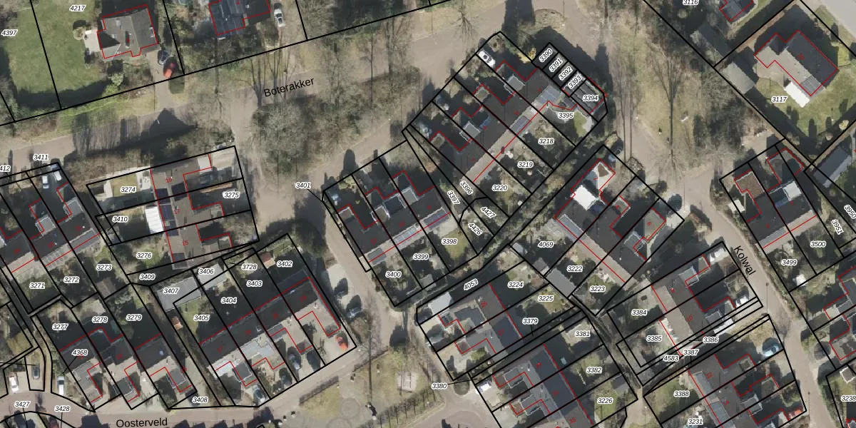 Het perceel waarop Boterakker 9 staat heeft een oppervlakte van 243 m². Dit is een middelgroot perceel. De perceeloppervlakte wordt geregistreerd door het Kadaster. Gedetailleerde informatie over de maten van dit perceel kunt u vinden in het rapport Kadastrale kaart met maatvoering van Boterakker 9.