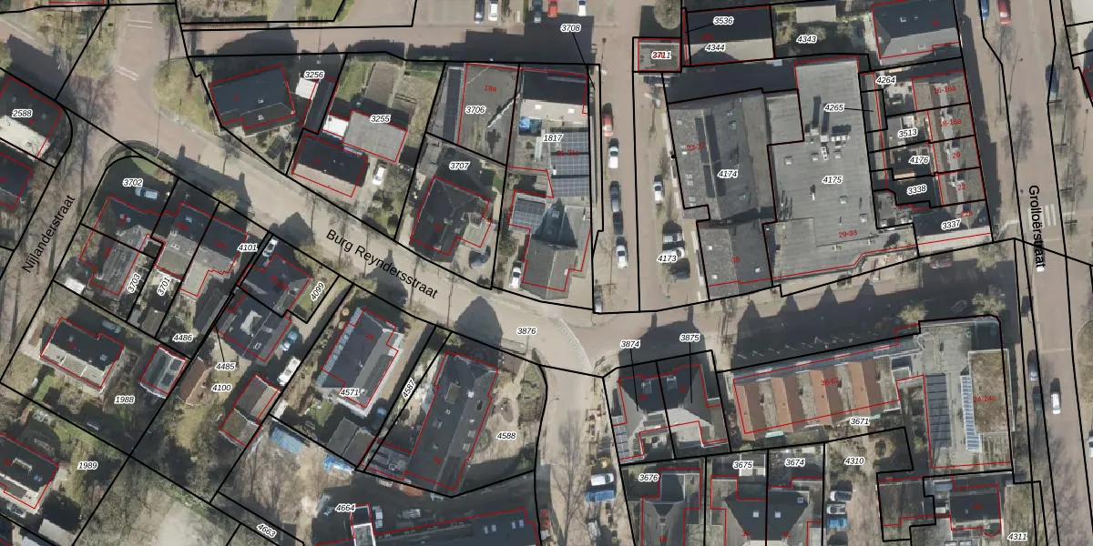 Het perceel waarop Burg Reyndersstraat 21 staat heeft een oppervlakte van 665 m². Dit is een groot perceel. De perceeloppervlakte wordt geregistreerd door het Kadaster. Gedetailleerde informatie over de maten van dit perceel kunt u vinden in het rapport Kadastrale kaart met maatvoering van Burg Reyndersstraat 21.