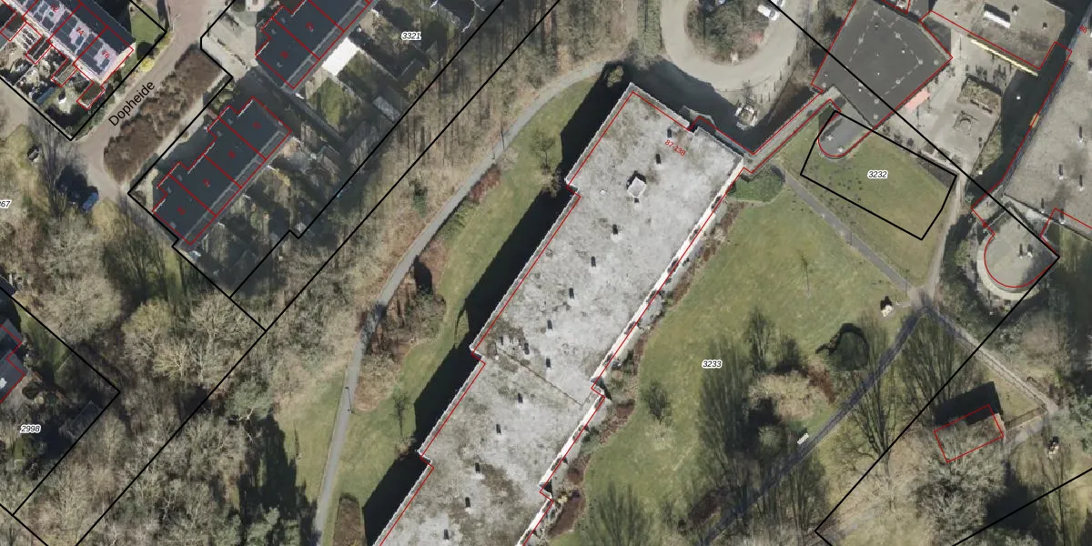 Het perceel waarop het adres ligt is RDE00-L-3233. De afkorting 'RDE00' staat voor kadastrale gemeente Rolde. De oppervlakte van het perceel is 1,6 ha. Dat is groter dan gemiddeld in Rolde, waar de gemiddelde perceeloppervlakte op 1,3 ha ligt. Het grootste perceel in de kadastrale gemeente is 4,62 km². Het kleinste perceel heeft een oppervlakte van 0 m². Er zijn 52 adressen aanwezig op het perceel. De huidige grenzen van het perceel zijn digitaal in de Basisregistratie Kadaster (BRK) geregistreerd op 27-03-2001.