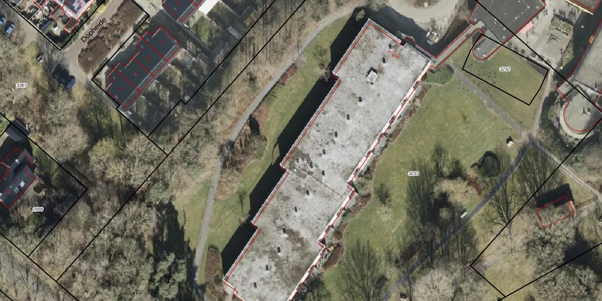 Het perceel waarop het adres ligt is RDE00-L-3233. De afkorting 'RDE00' staat voor kadastrale gemeente Rolde. De oppervlakte van het perceel is 1,6 ha. Dat is groter dan gemiddeld in Rolde, waar de gemiddelde perceeloppervlakte op 1,3 ha ligt. Het grootste perceel in de kadastrale gemeente is 4,62 km². Het kleinste perceel heeft een oppervlakte van 0 m². Er zijn 52 adressen aanwezig op het perceel. De huidige grenzen van het perceel zijn digitaal in de Basisregistratie Kadaster (BRK) geregistreerd op 27-03-2001.