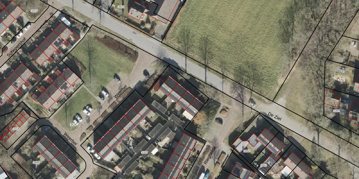 Het perceel waarop De Ziel 20 staat heeft een oppervlakte van 3935 m². Dit is een zeer groot perceel. De perceeloppervlakte wordt geregistreerd door het Kadaster. Gedetailleerde informatie over de maten van dit perceel kunt u vinden in het rapport Kadastrale kaart met maatvoering van De Ziel 20.