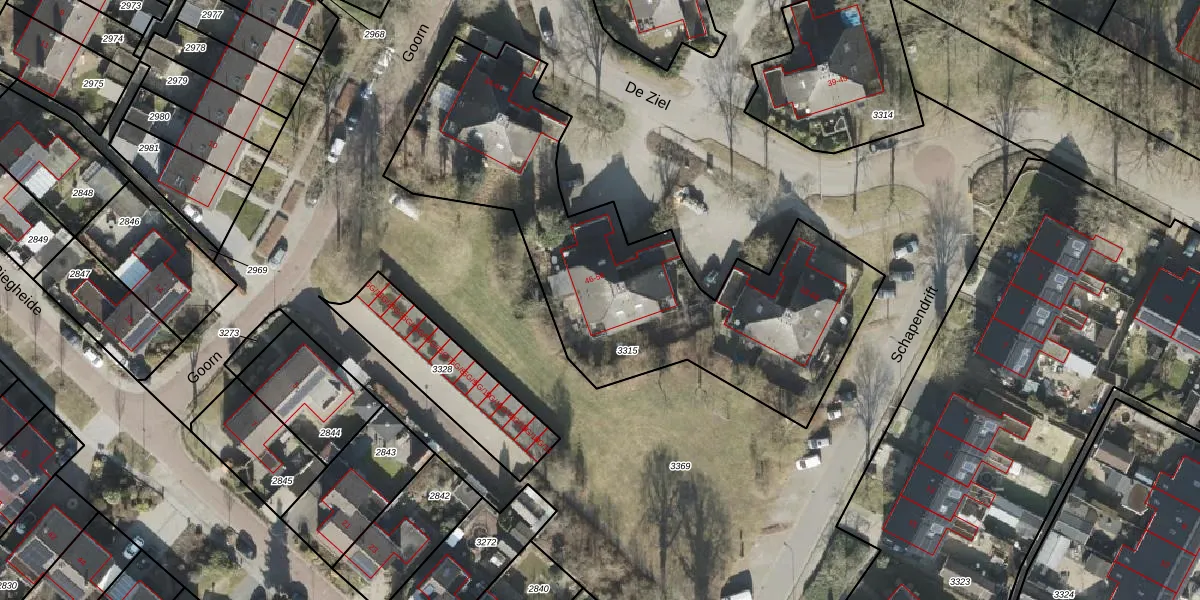Het perceel waarop De Ziel 54 staat heeft een oppervlakte van 1852 m². Dit is een zeer groot perceel. De perceeloppervlakte wordt geregistreerd door het Kadaster. Gedetailleerde informatie over de maten van dit perceel kunt u vinden in het rapport Kadastrale kaart met maatvoering van De Ziel 54.