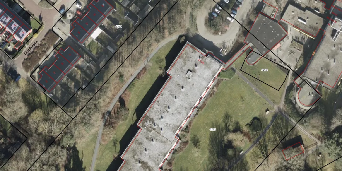 Het perceel waarop het adres ligt is RDE00-L-3233. De afkorting 'RDE00' staat voor kadastrale gemeente Rolde. De oppervlakte van het perceel is 1,6 ha. Dat is groter dan gemiddeld in Rolde, waar de gemiddelde perceeloppervlakte op 1,3 ha ligt. De grootste perceeloppervlakte in de kadastrale gemeente is 4,62 km². De kleinste oppervlakte bedraagt 0 m². Op het perceel liggen in totaal 52 adressen. De laatste wijziging in het de Basisregistratie Kadaster (BRK) was op 27-03-2001.