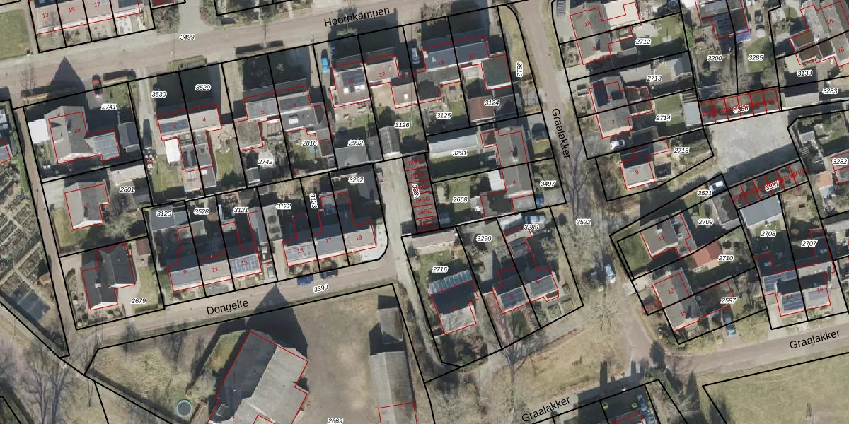 Dongelte 19-G-2 is gelegen op kadastraal perceel RDE00L3389. Deze kadastrale aanduiding is uniek en wordt gebruikt door het Kadaster om eigendomsrechten en andere zakelijke rechten vast te leggen. Het perceel maakt onderdeel uit van de kadastrale gemeente Rolde.