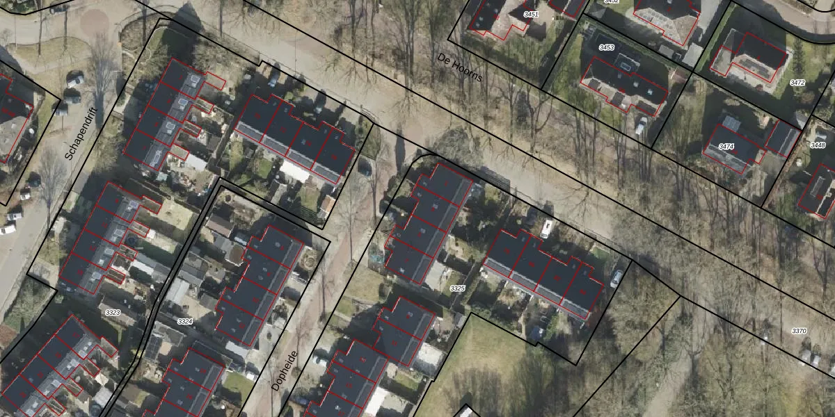 Het perceel waarop Dopheide 3 staat heeft een oppervlakte van 3059 m². Dit is een zeer groot perceel. De perceeloppervlakte wordt geregistreerd door het Kadaster. Gedetailleerde informatie over de maten van dit perceel kunt u vinden in het rapport Kadastrale kaart met maatvoering van Dopheide 3.