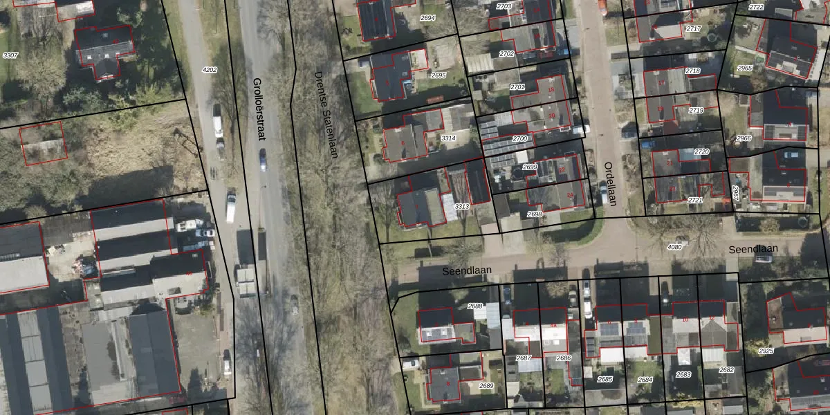 Drentse Statenlaan 7 is gelegen op kadastraal perceel RDE00R3313. Deze kadastrale aanduiding is uniek en wordt gebruikt door het Kadaster om eigendomsrechten en andere zakelijke rechten vast te leggen. Het perceel maakt onderdeel uit van de kadastrale gemeente Rolde.
