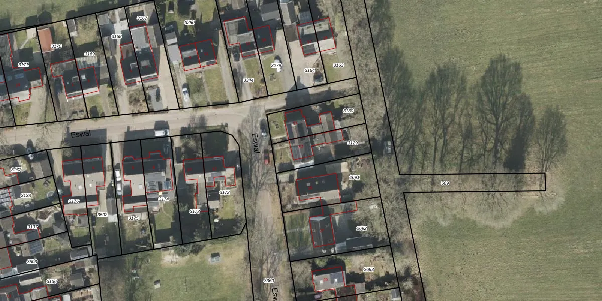 Eswal 23 is gelegen op kadastraal perceel RDE00L3129. Deze kadastrale aanduiding is uniek en wordt gebruikt door het Kadaster om eigendomsrechten en andere zakelijke rechten vast te leggen. Het perceel maakt onderdeel uit van de kadastrale gemeente Rolde.