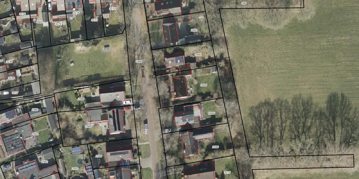 Het perceel waarop Eswal 31 staat heeft een oppervlakte van 638 m². Dit is een groot perceel. De perceeloppervlakte wordt geregistreerd door het Kadaster. Gedetailleerde informatie over de maten van dit perceel kunt u vinden in het rapport Kadastrale kaart met maatvoering van Eswal 31.