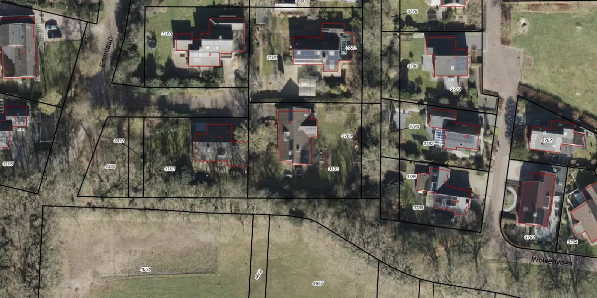 Ettenlaan 13 is gelegen op kadastraal perceel RDE00R3103. Deze kadastrale aanduiding is uniek en wordt gebruikt door het Kadaster om eigendomsrechten en andere zakelijke rechten vast te leggen. Het perceel maakt onderdeel uit van de kadastrale gemeente Rolde.