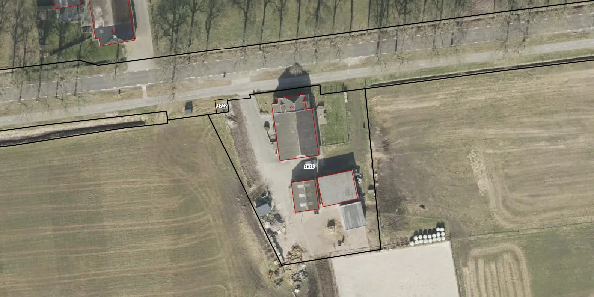 Gieterstraat 90 is gelegen op kadastraal perceel RDE00V1610. Deze kadastrale aanduiding is uniek en wordt gebruikt door het Kadaster om eigendomsrechten en andere zakelijke rechten vast te leggen. Het perceel maakt onderdeel uit van de kadastrale gemeente Rolde.