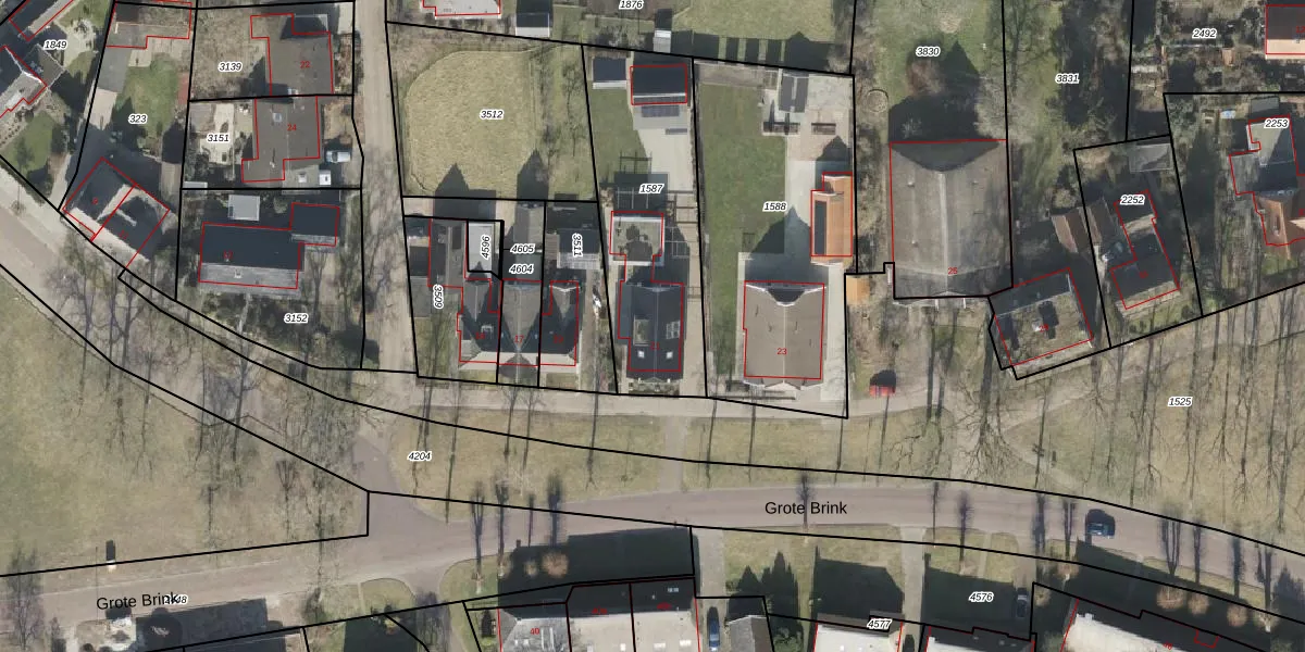 Het perceel waarop Grote Brink 21 staat heeft een oppervlakte van 800 m². Dit is een groot perceel. De perceeloppervlakte wordt geregistreerd door het Kadaster. Gedetailleerde informatie over de maten van dit perceel kunt u vinden in het rapport Kadastrale kaart met maatvoering van Grote Brink 21.