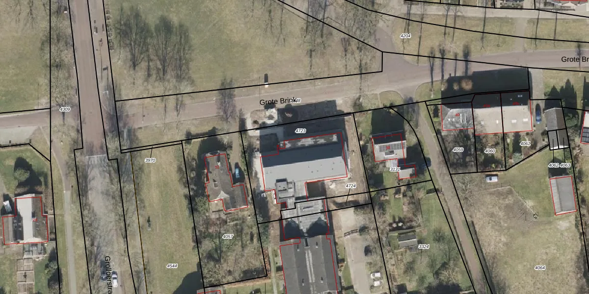 Grote Brink 34-a is gelegen op kadastraal perceel RDE00R4723. Deze kadastrale aanduiding is uniek en wordt gebruikt door het Kadaster om eigendomsrechten en andere zakelijke rechten vast te leggen. Het perceel maakt onderdeel uit van de kadastrale gemeente Rolde.