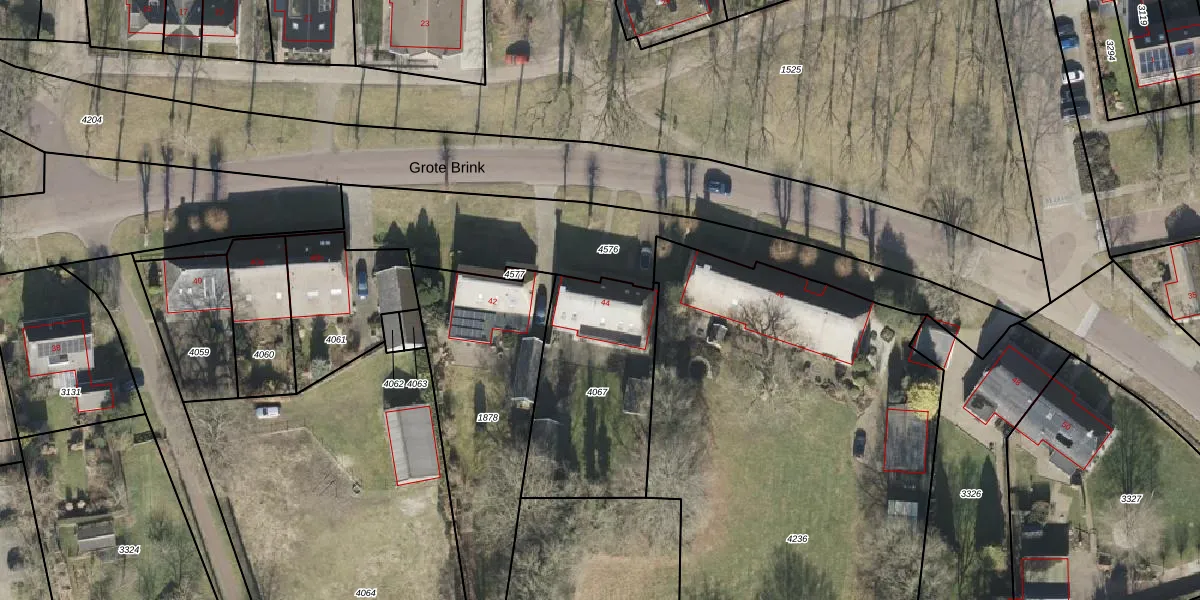 Het perceel waarop Grote Brink 44 staat heeft een oppervlakte van 717 m². Dit is een groot perceel. De perceeloppervlakte wordt geregistreerd door het Kadaster. Gedetailleerde informatie over de maten van dit perceel kunt u vinden in het rapport Kadastrale kaart met maatvoering van Grote Brink 44.