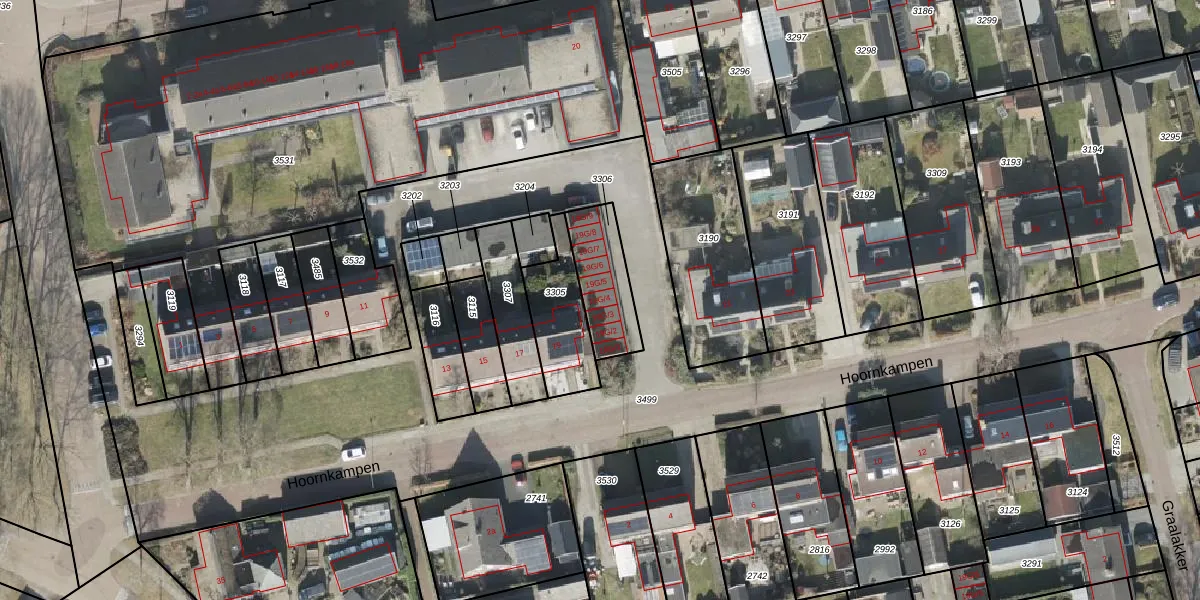 Hoornkampen 19-G-4 is gelegen op kadastraal perceel RDE00L3306. Deze kadastrale aanduiding is uniek en wordt gebruikt door het Kadaster om eigendomsrechten en andere zakelijke rechten vast te leggen. Het perceel maakt onderdeel uit van de kadastrale gemeente Rolde.