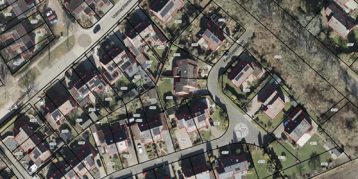 Keurnotenlaan 6 is gelegen op kadastraal perceel RDE00R3562. Deze kadastrale aanduiding is uniek en wordt gebruikt door het Kadaster om eigendomsrechten en andere zakelijke rechten vast te leggen. Het perceel maakt onderdeel uit van de kadastrale gemeente Rolde.