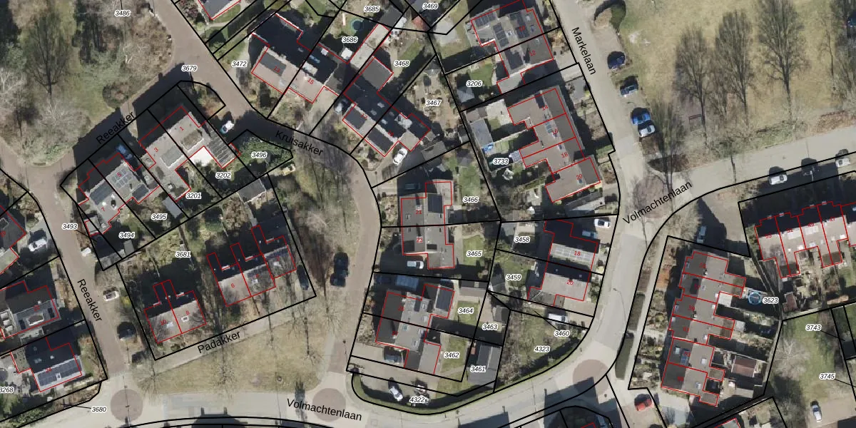 Gebruik de zoekbalk of klik op een perceel voor informatie over de adressen binnen dit perceel.