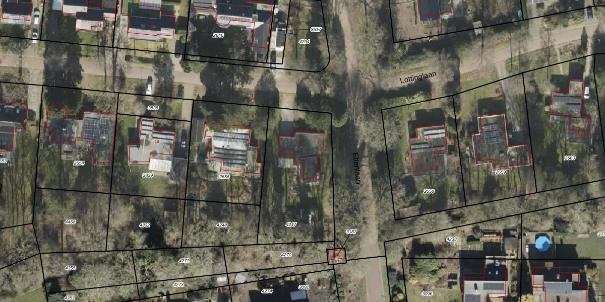 Lottinglaan 15 is gelegen op kadastraal perceel RDE00R4247. Deze kadastrale aanduiding is uniek en wordt gebruikt door het Kadaster om eigendomsrechten en andere zakelijke rechten vast te leggen. Het perceel maakt onderdeel uit van de kadastrale gemeente Rolde.