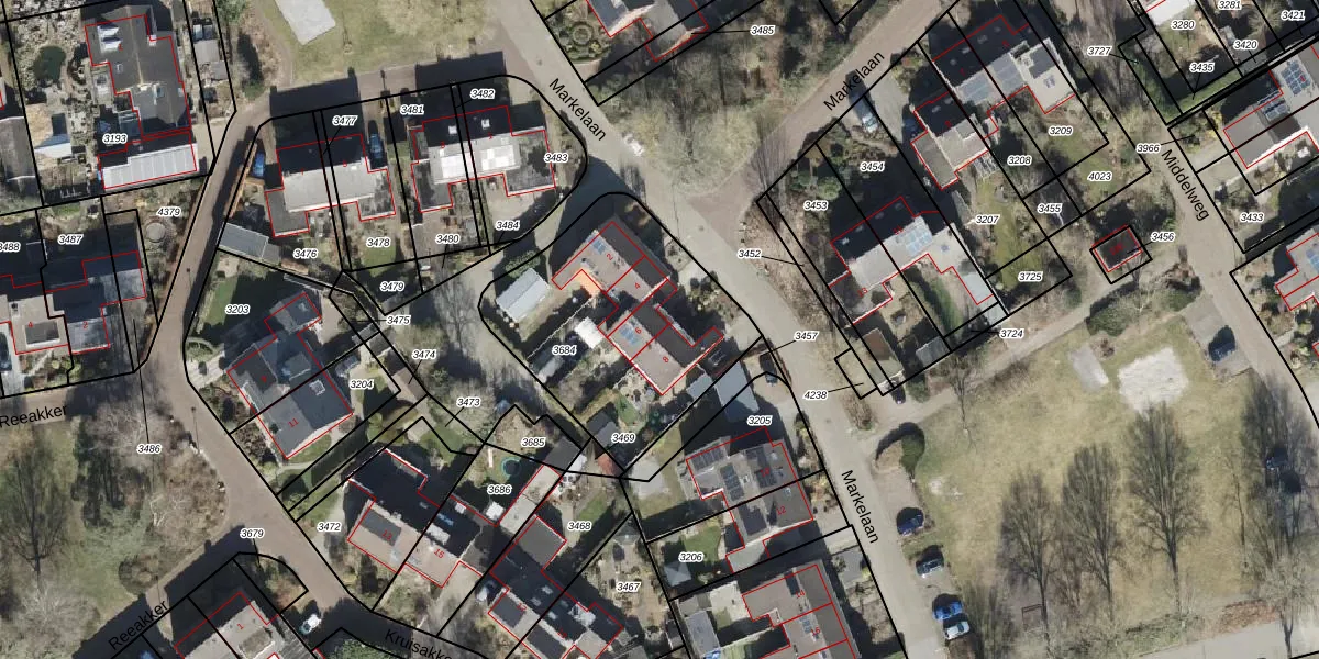 Markelaan 6 is gelegen op kadastraal perceel RDE00R3684. Deze kadastrale aanduiding is uniek en wordt gebruikt door het Kadaster om eigendomsrechten en andere zakelijke rechten vast te leggen. Het perceel maakt onderdeel uit van de kadastrale gemeente Rolde.